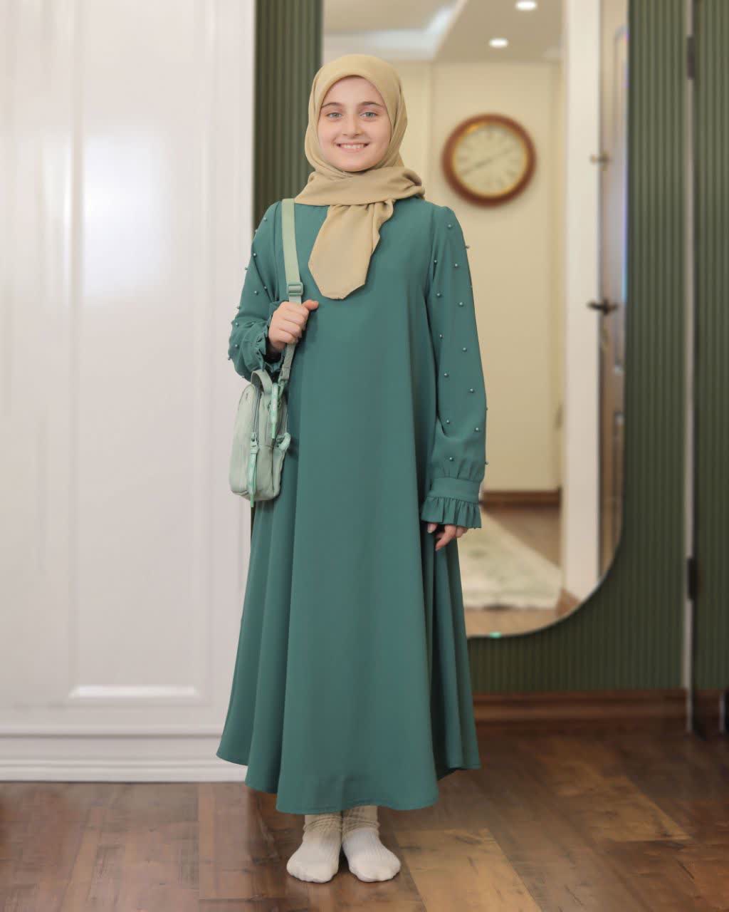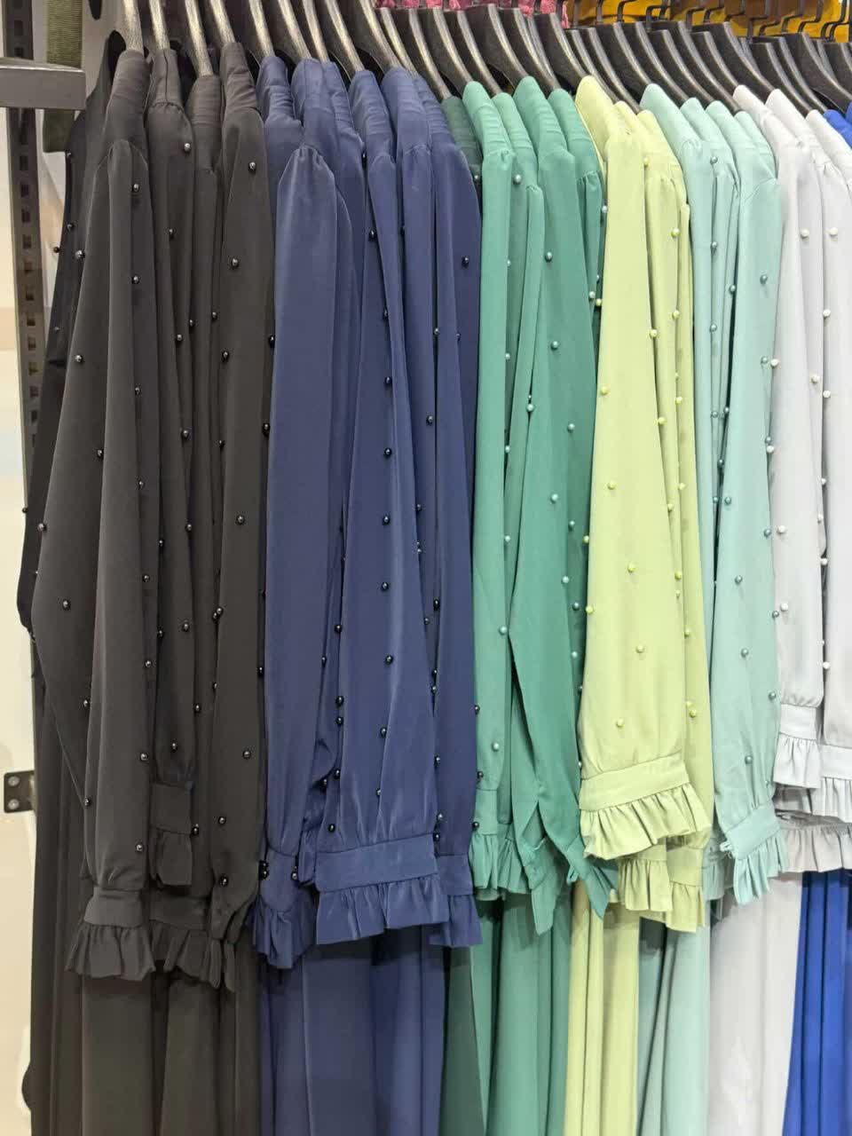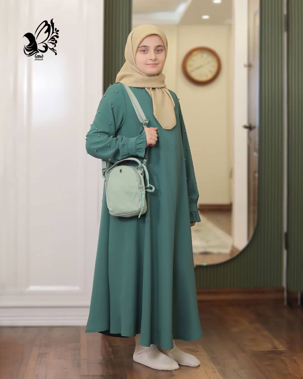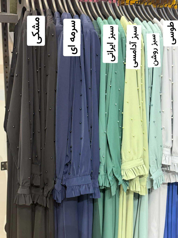 جزئیات: فقط روی آستین مروارید کار شده به جز رنگ آبی کاربنی که عکس کار بارگزاری شده